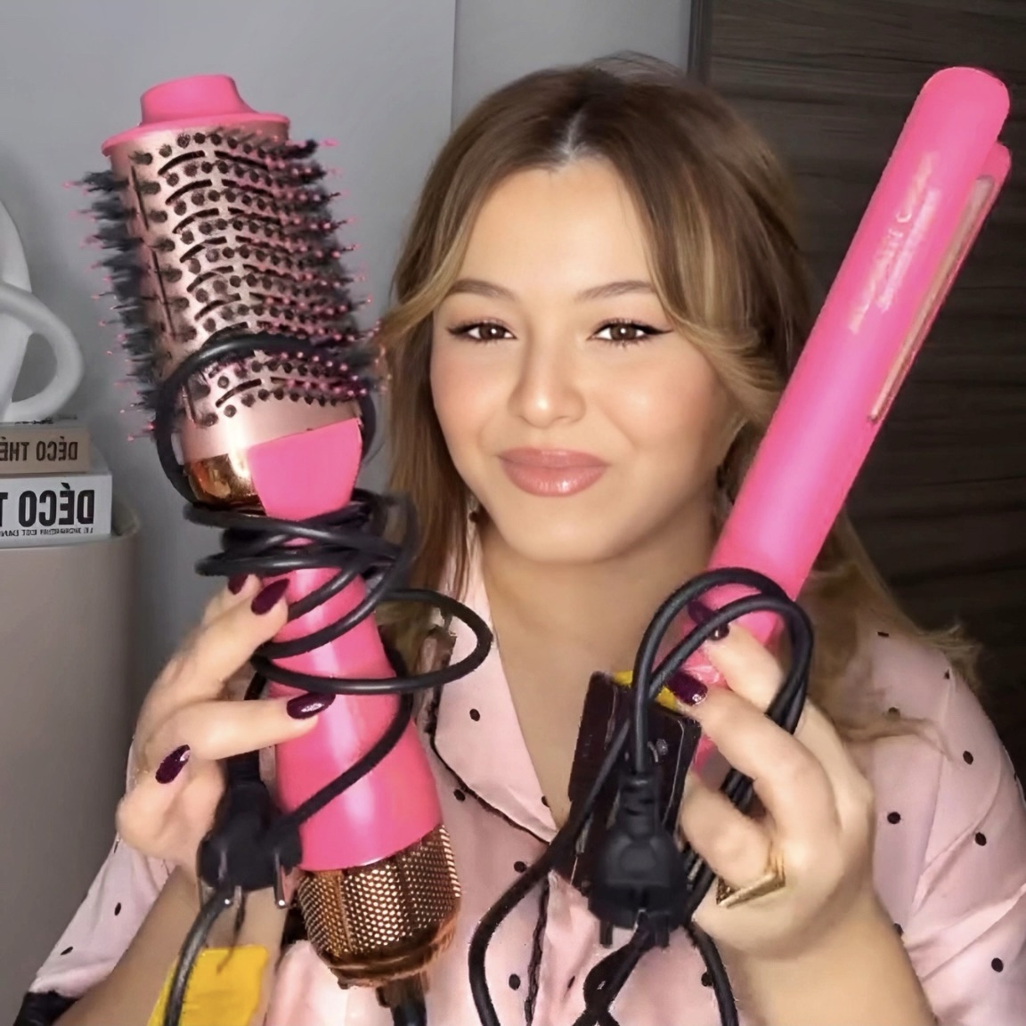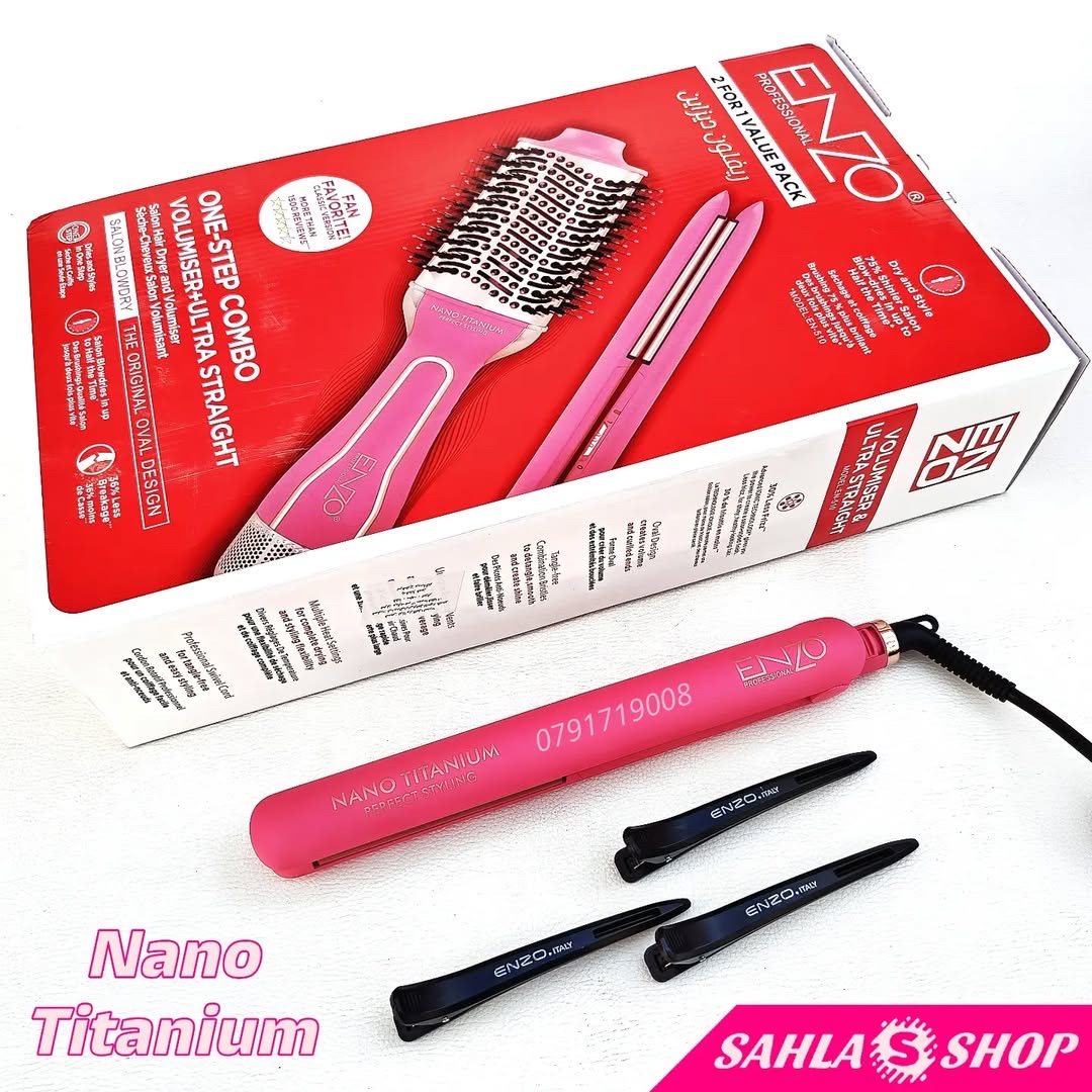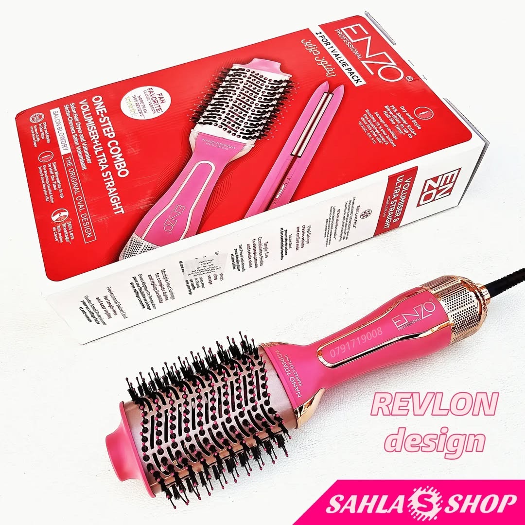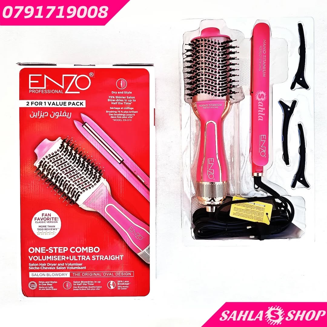 قومي بتحويل روتين تصفيف شعرك اليومي إلى تجربة احترافية كأنك في صالون التجميل مع مجموعة ENZO الكهربائية 2 في 1.