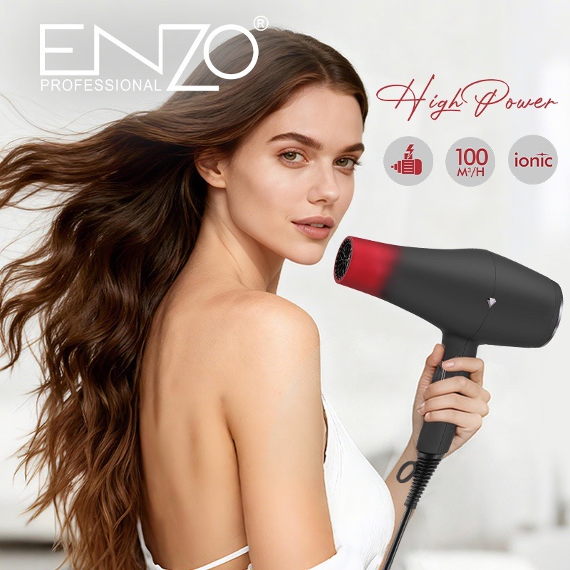 هل تبحثين عن مجفف شعر يختصر عليكِ الوقت ويمنحكِ نتيجة الصالونات؟ اكتشفي ENZO High Power Ionic AC Motor، الوحش الصامت والقوي في عالم تصفيف الشعر.